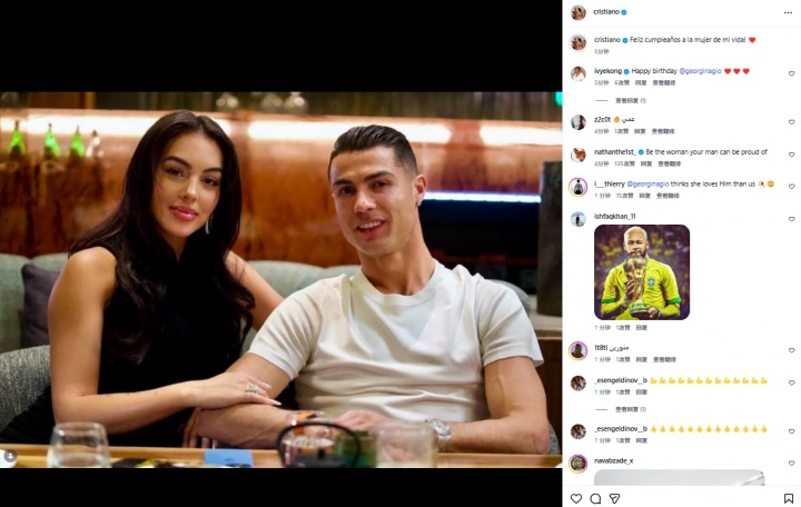 互动体验-C罗晒照为乔治娜庆生:祝我生命中的挚爱生日快乐!